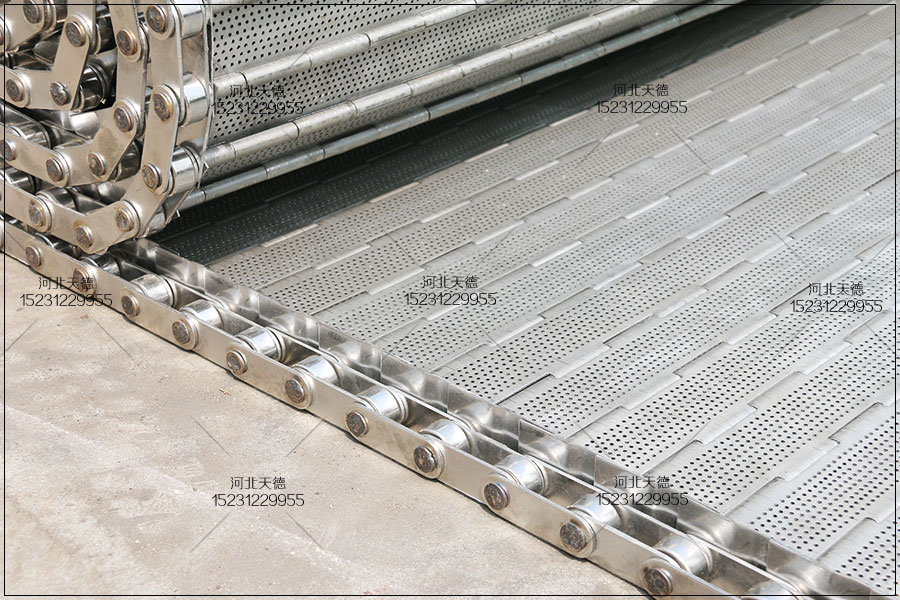 人們常說的鏈條式不銹鋼板條輸送帶也稱為鏈板輸送帶、輸送鏈板、不銹鋼鏈板等,主要是由多塊板材通過中間串軸連接在一起,類似于常用的家裝合頁 一樣,也有很多人稱其為合頁輸送帶,那這種板條輸送帶都有哪些優點呢? 鏈條式不銹鋼板條輸送帶優點就是載重能力方面比較突出,而且網面的縫隙比較小,非常適合用于輸送顆粒狀的產品。