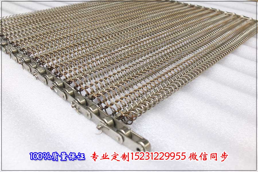 單旋金屬網帶:是用軋花穿條連接兩個不同方向的螺旋絲,小網孔大小為3-30毫米,金屬網帶的承載物品的能力通過定制不同不銹鋼絲的直徑粗細與支撐穿桿的直徑與桿間距來定制的,單旋金屬輸送網帶可適用于大多數行業輸送,使用材質可根據物料特性、使用環境選擇和空氣的情況來確定的。