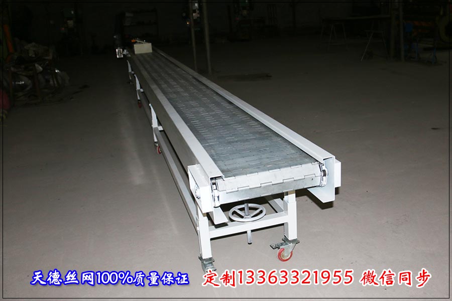 鏈板輸送機可以進行傾斜、直線、水平和垂直提升輸送,鏈板輸送機用于重物件的傳送。也能夠組成空間傳送線路,傳送線路是固定的鏈板輸送機輸送能力大,輸送距離長,能 夠在流水線輸送設備中同時完成幾項工作,使用用途相當廣泛。 我們要考慮輸送物料的體積面積大小、特性、密度、有沒有腐蝕性物品,鏈板輸送機輸送物料影響鏈板輸送機不銹鋼網帶的使用壽命。一般不銹鋼網帶能承受的拉力是有限的,在物料比較大重的情況下,不銹鋼輸送帶不能接受設備運行時產生的拉力,很容易將不銹鋼輸送帶拉斷。 現在在輸送機械行業的市場上有兩種鏈板輸送機,一種是串桿和金屬板焊而成 的,一張式帶彎板金屬板組成的。每一種鏈板輸送機都有著很重要的用途。