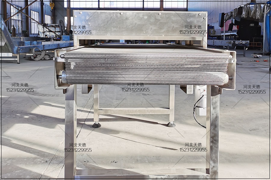 脆脆角流水線網帶式烘干機是利用不銹鋼鏈條網帶作為運載物料進行連續烘干的干燥設備。網帶式烘干機將所要處理的物料通過適當的鋪料機構,如星型布料器、擺動帶、粉碎機或造粒機,分布在輸送帶上,輸送帶通過一個或幾個加熱單元組成的通道,每個加熱單元均配有空氣加熱和循環系統,每一個通道有一個或幾個排濕系統,在輸送帶通過時,熱空氣從上往下或從下往上通過輸送帶上的物料,從而使物料能均勻干燥。網帶式烘干機是利用鋼網作為傳輸帶運載物料進行連續烘干的干燥設備由于傳輸帶是網狀,所以對烘干規則或不規則各種塊狀物(如:煤塊、各種礦粉成型快、食品、蔬菜等)適宜。本機可以和其他設備配套使用。也可以單獨使用。該設備可廣泛用于冶金、建材、陶瓷、化肥、化工等行業,并且網帶式烘干機也是食品和蔬菜進行干燥加工的理想設備。